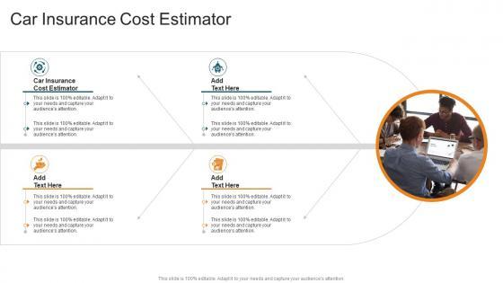 Introducing our well designed Car Insurance Cost Estimator In Powerpoint And Google Slides Cpb. This PowerPoint design presents information on topics like Car Insurance Cost Estimator. As it is predesigned it helps boost your confidence level. It also makes you a better presenter because of its high quality content and graphics. This PPT layout can be downloaded and used in different formats like PDF, PNG, and JPG. Not only this, it is available in both Standard Screen and Widescreen aspect ratios for your convenience. Therefore, click on the download button now to persuade and impress your audience. Our Car Insurance Cost Estimator In Powerpoint And Google Slides Cpb are topically designed to provide an attractive backdrop to any subject. Use them to look like a presentation pro.