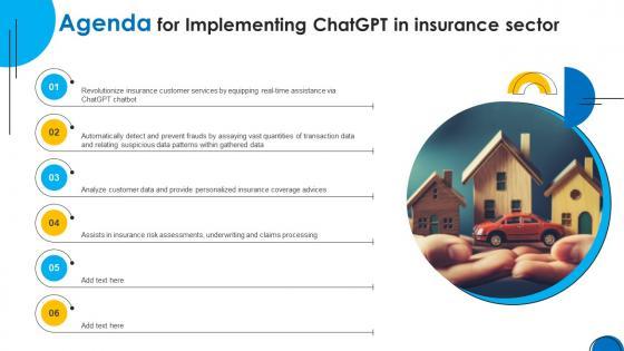 Do you have to make sure that everyone on your team knows about any specific topic I yes, then you should give Agenda For Implementing ChatGpt In Insurance Sector ChatGpt SS V a try. Our experts have put a lot of knowledge and effort into creating this impeccable Agenda For Implementing ChatGpt In Insurance Sector ChatGpt SS V. You can use this template for your upcoming presentations, as the slides are perfect to represent even the tiniest detail. You can download these templates from the Slidegeeks website and these are easy to edit. So grab these today Our Agenda For Implementing ChatGpt In Insurance Sector ChatGpt SS V are topically designed to provide an attractive backdrop to any subject. Use them to look like a presentation pro.