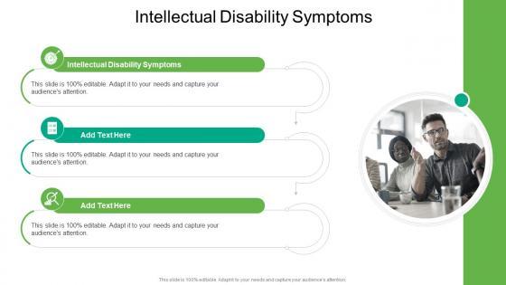 Presenting our innovatively designed set of slides titled Intellectual Disability Symptoms In Powerpoint And Google Slides Cpb. This completely editable PowerPoint graphic exhibits Intellectual Disability Symptoms that will help you convey the message impactfully. It can be accessed with Google Slides and is available in both standard screen and widescreen aspect ratios. Apart from this, you can download this well structured PowerPoint template design in different formats like PDF, JPG, and PNG. So, click the download button now to gain full access to this PPT design. Our Intellectual Disability Symptoms In Powerpoint And Google Slides Cpb are topically designed to provide an attractive backdrop to any subject. Use them to look like a presentation pro.