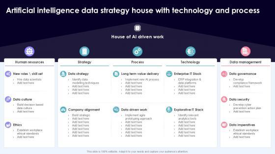 Want to ace your presentation in front of a live audience Our Artificial Intelligence Data Strategy House With Technology And Process can help you do that by engaging all the users towards you. Slidegeeks experts have put their efforts and expertise into creating these impeccable powerpoint presentations so that you can communicate your ideas clearly. Moreover, all the templates are customizable, and easy-to-edit and downloadable. Use these for both personal and commercial use. Our Artificial Intelligence Data Strategy House With Technology And Process are topically created to provide a visually appealing backdrop to any subject. Use them to give the impression that you are a presenting expert.