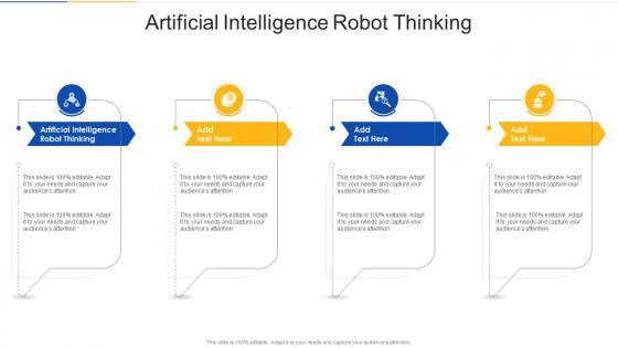 Introducing our well designed Artificial Intelligence Robot Thinking In Powerpoint And Google Slides Cpb. This PowerPoint design presents information on topics like Artificial Intelligence Robot Thinking. As it is predesigned it helps boost your confidence level. It also makes you a better presenter because of its high quality content and graphics. This PPT layout can be downloaded and used in different formats like PDF, PNG, and JPG. Not only this, it is available in both Standard Screen and Widescreen aspect ratios for your convenience. Therefore, click on the download button now to persuade and impress your audience. Our Artificial Intelligence Robot Thinking In Powerpoint And Google Slides Cpb are topically designed to provide an attractive backdrop to any subject. Use them to look like a presentation pro.