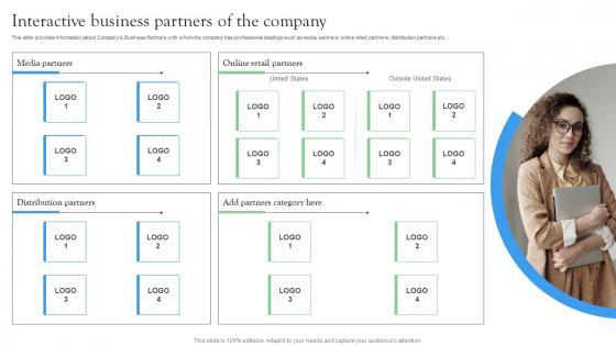 This slide provides information about Companys Business Partners with whom the company has professional dealings such as media partners, online retail partners, distribution partners etc. Find highly impressive Interactive Business Partners Of The Company Startup Investment Sources Elements Pdf on Slidegeeks to deliver a meaningful presentation. You can save an ample amount of time using these presentation templates. No need to worry to prepare everything from scratch because Slidegeeks experts have already done a huge research and work for you. You need to download Interactive Business Partners Of The Company Startup Investment Sources Elements Pdf for your upcoming presentation. All the presentation templates are 100 percent editable and you can change the color and personalize the content accordingly. Download now This slide provides information about Companys Business Partners with whom the company has professional dealings such as media partners, online retail partners, distribution partners etc.