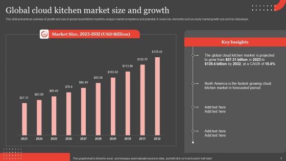 This slide presents an overview of growth and size of global cloud kitchen market to analyze market competency and potential. It covers key elements such as yearly market growth size and key takeaways. This International Food Delivery Market Global Cloud Kitchen Market Size And Growth Demonstration Pdf is perfect for any presentation, be it in front of clients or colleagues. It is a versatile and stylish solution for organizing your meetings. The International Food Delivery Market Global Cloud Kitchen Market Size And Growth Demonstration Pdf features a modern design for your presentation meetings. The adjustable and customizable slides provide unlimited possibilities for acing up your presentation. Slidegeeks has done all the homework before launching the product for you. So, do not wait, grab the presentation templates today This slide presents an overview of growth and size of global cloud kitchen market to analyze market competency and potential. It covers key elements such as yearly market growth size and key takeaways.