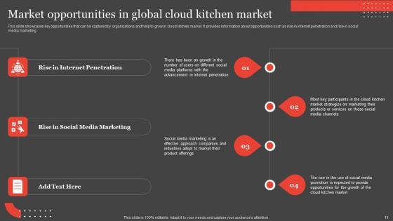 This slide showcases key opportunities that can be captured by organizations and help to grow in cloud kitchen market. It provides information about opportunities such as rise in internet penetration and rise in social media marketing. Get a simple yet stunning designed Market Opportunities In Global Cloud Kitchen Market International Food Delivery Structure Pdf. It is the best one to establish the tone in your meetings. It is an excellent way to make your presentations highly effective. So, download this PPT today from Slidegeeks and see the positive impacts. Our easy-to-edit Market Opportunities In Global Cloud Kitchen Market International Food Delivery Structure Pdf can be your go-to option for all upcoming conferences and meetings. So, what are you waiting for Grab this template today. This slide showcases key opportunities that can be captured by organizations and help to grow in cloud kitchen market. It provides information about opportunities such as rise in internet penetration and rise in social media marketing.