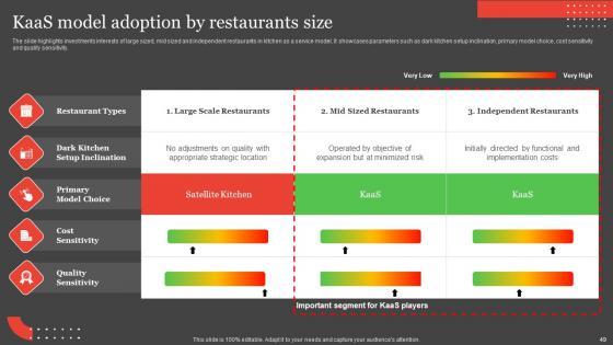 The slide highlights investments interests of large sized, mid sized and independent restaurants in kitchen as a service model. It showcases parameters such as dark kitchen setup inclination, primary model choice, cost sensitivity and quality sensitivity. The best PPT templates are a great way to save time, energy, and resources. Slidegeeks have 100 percent editable powerpoint slides making them incredibly versatile. With these quality presentation templates, you can create a captivating and memorable presentation by combining visually appealing slides and effectively communicating your message. Download International Food Delivery Market Kaas Model Adoption By Restaurants Size Portrait Pdf from Slidegeeks and deliver a wonderful presentation. The slide highlights investments interests of large sized, mid sized and independent restaurants in kitchen as a service model. It showcases parameters such as dark kitchen setup inclination, primary model choice, cost sensitivity and quality sensitivity.