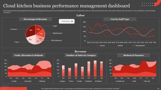 This slide presents a dashboard for tracking and managing business income and expenditure. It includes key components such as method of payment, voids, discounts, refunds, top menu items, cost by staff type and percentage of revenue. Do you have an important presentation coming up Are you looking for something that will make your presentation stand out from the rest Look no further than International Food Delivery Market Cloud Kitchen Business Performance Management Slides Pdf. With our professional designs, you can trust that your presentation will pop and make delivering it a smooth process. And with Slidegeeks, you can trust that your presentation will be unique and memorable. So why wait Grab International Food Delivery Market Cloud Kitchen Business Performance Management Slides Pdf today and make your presentation stand out from the rest. This slide presents a dashboard for tracking and managing business income and expenditure. It includes key components such as method of payment, voids, discounts, refunds, top menu items, cost by staff type and percentage of revenue.