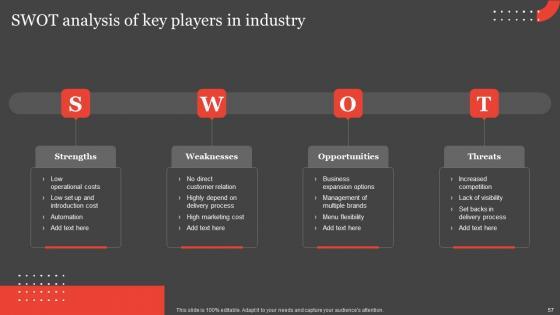 Boost your pitch with our creative International Food Delivery Market SWOT Analysis Of Key Players In Industry Infographics Pdf. Deliver an awe-inspiring pitch that will mesmerize everyone. Using these presentation templates you will surely catch everyones attention. You can browse the ppts collection on our website. We have researchers who are experts at creating the right content for the templates. So you do not have to invest time in any additional work. Just grab the template now and use them. Our International Food Delivery Market SWOT Analysis Of Key Players In Industry Infographics Pdf are topically designed to provide an attractive backdrop to any subject. Use them to look like a presentation pro.