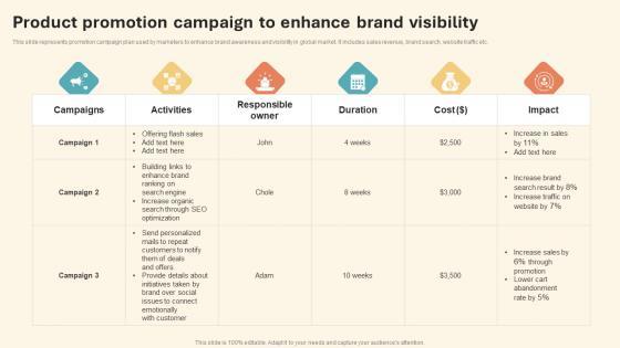 This slide represents promotion campaign plan used by marketers to enhance brand awareness and visibility in global market. It includes sales revenue, brand search, website traffic etc.Slidegeeks has constructed Product Promotion Campaign To Enhance International Marketing Strategy Portrait Pdf after conducting extensive research and examination. These presentation templates are constantly being generated and modified based on user preferences and critiques from editors. Here, you will find the most attractive templates for a range of purposes while taking into account ratings and remarks from users regarding the content. This is an excellent jumping-off point to explore our content and will give new users an insight into our top-notch PowerPoint Templates. This slide represents promotion campaign plan used by marketers to enhance brand awareness and visibility in global market. It includes sales revenue, brand search, website traffic etc.