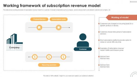 This slide shows working procedure of subscription revenue model for a customer. It include components such as company, service and payment cycle between customer and company, etc. Take your projects to the next level with our ultimate collection of Working Framework Of Subscription Internet Based Trade Structure Ppt Presentation. Slidegeeks has designed a range of layouts that are perfect for representing task or activity duration, keeping track of all your deadlines at a glance. Tailor these designs to your exact needs and give them a truly corporate look with your own brand colors they will make your projects stand out from the rest This slide shows working procedure of subscription revenue model for a customer. It include components such as company, service and payment cycle between customer and company, etc.