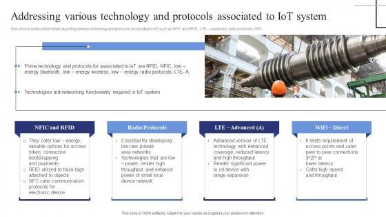 This slide provides information regarding various technology and protocols associated to IoT such as NFIC and RFID, LTE Advanced, radio protocols, WiFi. Explore a selection of the finest Addressing Various Technology And Protocols Exploring Internet Things Sample PDF here. With a plethora of professionally designed and pre-made slide templates, you can quickly and easily find the right one for your upcoming presentation. You can use our Addressing Various Technology And Protocols Exploring Internet Things Sample PDF to effectively convey your message to a wider audience. Slidegeeks has done a lot of research before preparing these presentation templates. The content can be personalized and the slides are highly editable. Grab templates today from Slidegeeks. This slide provides information regarding various technology and protocols associated to IoT such as NFIC and RFID, LTE Advanced, radio protocols, WiFi.