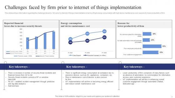 This slide portrays information regarding the challenges faced by firm prior to internet of things implementation in terms of high energy consumption with high device maintenance cost, reasons for lower productivity of firm. The best PPT templates are a great way to save time, energy, and resources. Slidegeeks have 100 percent editable powerpoint slides making them incredibly versatile. With these quality presentation templates, you can create a captivating and memorable presentation by combining visually appealing slides and effectively communicating your message. Download Challenges Faced By Firm Prior To Internet Of Things Exploring Internet Things Information PDFfrom Slidegeeks and deliver a wonderful presentation. This slide portrays information regarding the challenges faced by firm prior to internet of things implementation in terms of high energy consumption with high device maintenance cost, reasons for lower productivity of firm.
