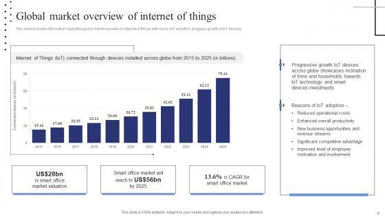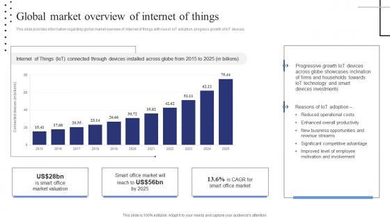 This slide provides information regarding global market overview of internet of things with rise in IoT adoption, progress growth of IoT devices. Presenting this PowerPoint presentation, titled Global Market Overview Of Internet Of Things Exploring Internet Things Inspiration PDF, with topics curated by our researchers after extensive research. This editable presentation is available for immediate download and provides attractive features when used. Download now and captivate your audience. Presenting this Global Market Overview Of Internet Of Things Exploring Internet Things Inspiration PDF. Our researchers have carefully researched and created these slides with all aspects taken into consideration. This is a completely customizable Global Market Overview Of Internet Of Things Exploring Internet Things Inspiration PDF that is available for immediate downloading. Download now and make an impact on your audience. Highlight the attractive features available with our PPTs. This slide provides information regarding global market overview of internet of things with rise in IoT adoption, progress growth of IoT devices.
