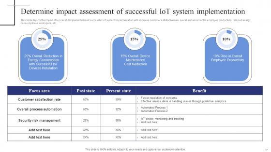 This slide depicts the impact of successful implementation of successful IoT system implementation with improves customer satisfaction rate, overall enhancement in employee productivity, reduced energy consumption at workspace, etc. The Determine Impact Assessment Of Successful Iot Exploring Internet Things Microsoft PDF is a compilation of the most recent design trends as a series of slides. It is suitable for any subject or industry presentation, containing attractive visuals and photo spots for businesses to clearly express their messages. This template contains a variety of slides for the user to input data, such as structures to contrast two elements, bullet points, and slides for written information. Slidegeeks is prepared to create an impression. This slide depicts the impact of successful implementation of successful IoT system implementation with improves customer satisfaction rate, overall enhancement in employee productivity, reduced energy consumption at workspace, etc.