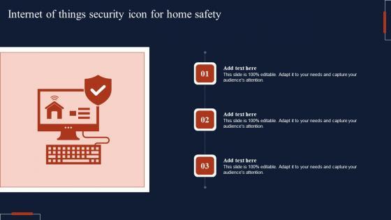 Pitch your topic with ease and precision using this Internet Of Things Security Icon For Home Safety Background Pdf This layout presents information on Internet Of Things Security, Icon For Home Safety It is also available for immediate download and adjustment. So, changes can be made in the color, design, graphics or any other component to create a unique layout. Our Internet Of Things Security Icon For Home Safety Background Pdf are topically designed to provide an attractive backdrop to any subject. Use them to look like a presentation pro.