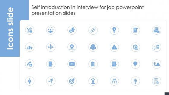 Get a simple yet stunning designed Icons Slide Self Introduction In Interview For Job PowerPoint Presentation Slides PPT Slides SS. It is the best one to establish the tone in your meetings. It is an excellent way to make your presentations highly effective. So, download this PPT today from Slidegeeks and see the positive impacts. Our easy-to-edit Icons Slide Self Introduction In Interview For Job PowerPoint Presentation Slides PPT Slides SS can be your go-to option for all upcoming conferences and meetings. So, what are you waiting for Grab this template today. Our Icons Slide Self Introduction In Interview For Job PowerPoint Presentation Slides PPT Slides SS are topically designed to provide an attractive backdrop to any subject. Use them to look like a presentation pro.
