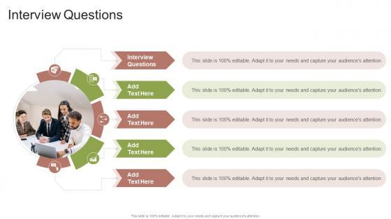 Presenting our innovatively-designed set of slides titled Interview Questions In Powerpoint And Google Slides Cpb. This completely editable PowerPoint graphic exhibits Interview Questions that will help you convey the message impactfully. It can be accessed with Google Slides and is available in both standard screen and widescreen aspect ratios. Apart from this, you can download this well-structured PowerPoint template design in different formats like PDF, JPG, and PNG. So, click the download button now to gain full access to this PPT design. Our Interview Questions In Powerpoint And Google Slides Cpb are topically designed to provide an attractive backdrop to any subject. Use them to look like a presentation pro.