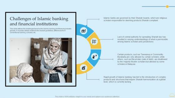 This slide defines the challenges faced by the Islamic banking and financing industry globally. It includes details related to the shariah guidelines, differences from conventional banking, scholars, etc. Whether you have daily or monthly meetings, a brilliant presentation is necessary. In Depth Analysis Of Islamic Banking Challenges Of Islamic Banking And Financial Institutions Introduction PDF can be your best option for delivering a presentation. Represent everything in detail using In Depth Analysis Of Islamic Banking Challenges Of Islamic Banking And Financial Institutions Introduction PDF and make yourself stand out in meetings. The template is versatile and follows a structure that will cater to your requirements. All the templates prepared by Slidegeeks are easy to download and edit. Our research experts have taken care of the corporate themes as well. So, give it a try and see the results. This slide defines the challenges faced by the Islamic banking and financing industry globally. It includes details related to the shariah guidelines, differences from conventional banking, scholars, etc.