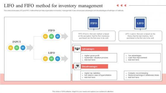 This slide showcases LIFO and FIFO method that can help organization in inventory management. It also showcases advantages and disadvantages of both type of methods. Welcome to our selection of the LIFO And FIFO Method For Inventory Management Tactical Guide Stock Administration Ideas Pdf. These are designed to help you showcase your creativity and bring your sphere to life. Planning and Innovation are essential for any business that is just starting out. This collection contains the designs that you need for your everyday presentations. All of our PowerPoints are 100 percent editable, so you can customize them to suit your needs. This multi-purpose template can be used in various situations. Grab these presentation templates today This slide showcases LIFO and FIFO method that can help organization in inventory management. It also showcases advantages and disadvantages of both type of methods.