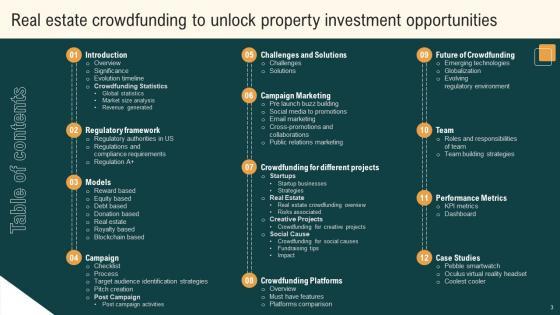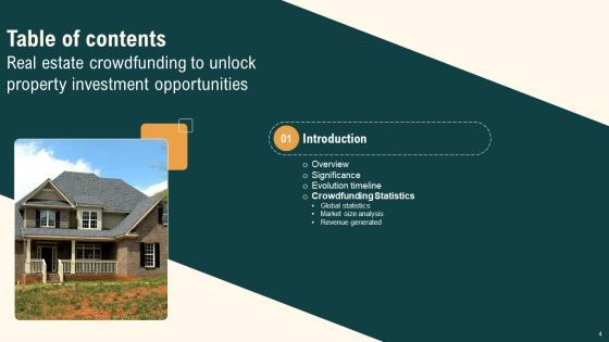 Here you can discover an assortment of the finest PowerPoint and Google Slides templates. With these templates, you can create presentations for a variety of purposes while simultaneously providing your audience with an eye-catching visual experience. Download Table Of Contents Real Estate Crowdfunding To Unlock Property Investment Opportunities Fin SS V to deliver an impeccable presentation. These templates will make your job of preparing presentations much quicker, yet still, maintain a high level of quality. Slidegeeks has experienced researchers who prepare these templates and write high-quality content for you. Later on, you can personalize the content by editing the Table Of Contents Real Estate Crowdfunding To Unlock Property Investment Opportunities Fin SS V. Our Table Of Contents Real Estate Crowdfunding To Unlock Property Investment Opportunities Fin SS V are topically designed to provide an attractive backdrop to any subject. Use them to look like a presentation pro.