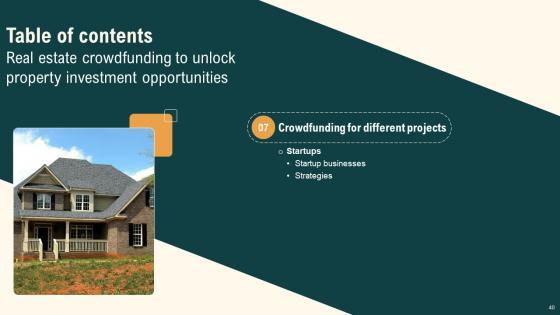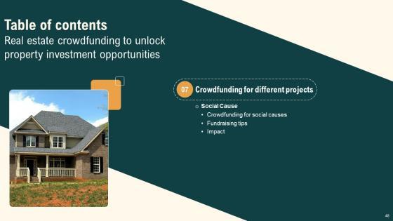 Presenting this PowerPoint presentation, titled Table Of Contents For Real Estate Crowdfunding To Unlock Property Investment Opportunities Fin SS V, with topics curated by our researchers after extensive research. This editable presentation is available for immediate download and provides attractive features when used. Download now and captivate your audience. Presenting this Table Of Contents For Real Estate Crowdfunding To Unlock Property Investment Opportunities Fin SS V. Our researchers have carefully researched and created these slides with all aspects taken into consideration. This is a completely customizable Table Of Contents For Real Estate Crowdfunding To Unlock Property Investment Opportunities Fin SS V that is available for immediate downloading. Download now and make an impact on your audience. Highlight the attractive features available with our PPTs. Our Table Of Contents For Real Estate Crowdfunding To Unlock Property Investment Opportunities Fin SS V are topically designed to provide an attractive backdrop to any subject. Use them to look like a presentation pro.