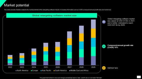 This slide consists of details related to the market potential of the retargeting software industry. It includes information such as CAGR compound annual growth rate and market size. If you are looking for a format to display your unique thoughts, then the professionally designed Market Potential Brand Exposure And Lead Generation Software Investment Clipart Pdf is the one for you. You can use it as a Google Slides template or a PowerPoint template. Incorporate impressive visuals, symbols, images, and other charts. Modify or reorganize the text boxes as you desire. Experiment with shade schemes and font pairings. Alter, share or cooperate with other people on your work. Download Market Potential Brand Exposure And Lead Generation Software Investment Clipart Pdf and find out how to give a successful presentation. Present a perfect display to your team and make your presentation unforgettable. This slide consists of details related to the market potential of the retargeting software industry. It includes information such as CAGR compound annual growth rate and market size.