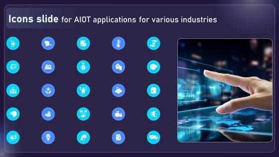 Help your business to create an attention-grabbing presentation using our Icons Slide For AIOT Applications For Various Industries IoT SS V set of slides. The slide contains innovative icons that can be flexibly edited. Choose this Icons Slide For AIOT Applications For Various Industries IoT SS V template to create a satisfactory experience for your customers. Go ahead and click the download button. Our Icons Slide For AIOT Applications For Various Industries IoT SS V are topically designed to provide an attractive backdrop to any subject. Use them to look like a presentation pro.