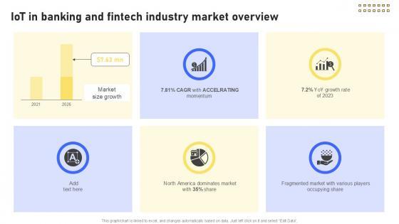 Are you in need of a template that can accommodate all of your creative concepts This one is crafted professionally and can be altered to fit any style. Use it with Google Slides or PowerPoint. Include striking photographs, symbols, depictions, and other visuals. Fill, move around, or remove text boxes as desired. Test out color palettes and font mixtures. Edit and save your work, or work with colleagues. Download IoT In Banking And Fintech Industry Market Overview IoT In Banking For Digital Future IoT SS V and observe how to make your presentation outstanding. Give an impeccable presentation to your group and make your presentation unforgettable. Our IoT In Banking And Fintech Industry Market Overview IoT In Banking For Digital Future IoT SS V are topically designed to provide an attractive backdrop to any subject. Use them to look like a presentation pro.
