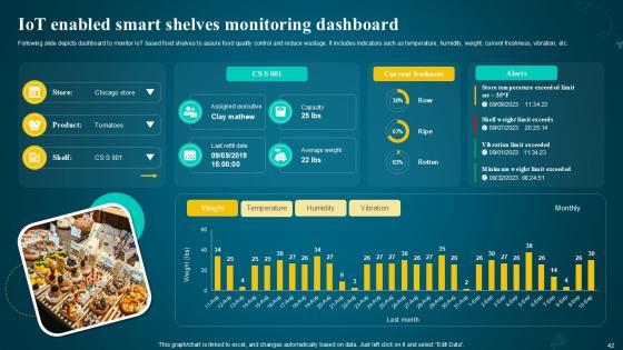 The purpose of this slide is to showcase intelligent shopping cart applications that can assist retail companies in providing personalized shopping experience to customers and increase sales. The applications are product recommendation, navigation assistance, inventory tracking, and self-checkout. The best PPT templates are a great way to save time, energy, and resources. Slidegeeks have 100 percent editable powerpoint slides making them incredibly versatile. With these quality presentation templates, you can create a captivating and memorable presentation by combining visually appealing slides and effectively communicating your message. Download Integrating AI With IoT Use Case 2 AIoT Retail Applications In Intelligent Shopping Cart IoT SS V from Slidegeeks and deliver a wonderful presentation. The purpose of this slide is to showcase intelligent shopping cart applications that can assist retail companies in providing personalized shopping experience to customers and increase sales. The applications are product recommendation, navigation assistance, inventory tracking, and self-checkout.