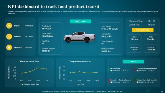 This slide shows use cases which can be referred by logistics teams for optimizing fleet operations through IoT. It provides details about vehicle performance tracking and maintenance, drivers supervision, optimized planning and scheduling. Presenting Deploying Iot In Logistics And Supply Chain Iot Fleet Management Tool Use Cases Graphics PDF to provide visual cues and insights. Share and navigate important information on three stages that need your due attention. This template can be used to pitch topics like Vehicle Performance Tracking, Drivers Supervision, Optimized Planning. In addtion, this PPT design contains high resolution images, graphics, etc, that are easily editable and available for immediate download.