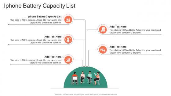 Introducing our well-designed Iphone Battery Capacity List In Powerpoint And Google Slides Cpb. This PowerPoint design presents information on topics like Iphone Battery Capacity List. As it is predesigned it helps boost your confidence level. It also makes you a better presenter because of its high-quality content and graphics. This PPT layout can be downloaded and used in different formats like PDF, PNG, and JPG. Not only this, it is available in both Standard Screen and Widescreen aspect ratios for your convenience. Therefore, click on the download button now to persuade and impress your audience. Our Iphone Battery Capacity List In Powerpoint And Google Slides Cpb are topically designed to provide an attractive backdrop to any subject. Use them to look like a presentation pro.