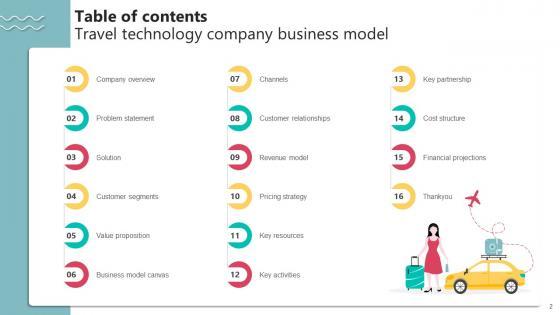 Are you in need of a template that can accommodate all of your creative concepts This one is crafted professionally and can be altered to fit any style. Use it with Google Slides or PowerPoint. Include striking photographs, symbols, depictions, and other visuals. Fill, move around, or remove text boxes as desired. Test out color palettes and font mixtures. Edit and save your work, or work with colleagues. Download Table Of Contents Travel Technology Company Business Model BMC SS V and observe how to make your presentation outstanding. Give an impeccable presentation to your group and make your presentation unforgettable. Our Table Of Contents Travel Technology Company Business Model BMC SS V are topically designed to provide an attractive backdrop to any subject. Use them to look like a presentation pro.