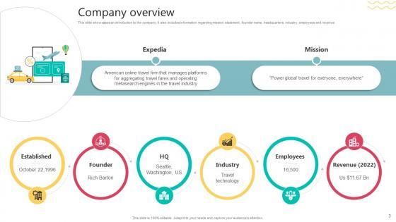 This slide showcases an introduction to the company. It also includes information regarding mission statement, founder name, headquarters, industry, employees and revenue. Create an editable Company Overview Travel Technology Company Business Model BMC SS V that communicates your idea and engages your audience. Whether you are presenting a business or an educational presentation, pre-designed presentation templates help save time. Company Overview Travel Technology Company Business Model BMC SS V is highly customizable and very easy to edit, covering many different styles from creative to business presentations. Slidegeeks has creative team members who have crafted amazing templates. So, go and get them without any delay. This slide showcases an introduction to the company. It also includes information regarding mission statement, founder name, headquarters, industry, employees and revenue.