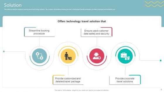 This slide provide the solutions faced by travel technology industry. The company streamlines booking process, offer budget friendly packages, provides corporate travel solutions, etc. If your project calls for a presentation, then Slidegeeks is your go-to partner because we have professionally designed, easy-to-edit templates that are perfect for any presentation. After downloading, you can easily edit Solution Travel Technology Company Business Model BMC SS V and make the changes accordingly. You can rearrange slides or fill them with different images. Check out all the handy templates This slide provide the solutions faced by travel technology industry. The company streamlines booking process, offer budget friendly packages, provides corporate travel solutions, etc.