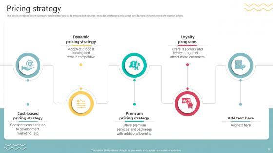 This slide showcases how the company determines prices for its products and services. It includes strategies such as cost-based pricing, dynamic pricing and premium pricing. Do you have an important presentation coming up Are you looking for something that will make your presentation stand out from the rest Look no further than Pricing Strategy Travel Technology Company Business Model BMC SS V. With our professional designs, you can trust that your presentation will pop and make delivering it a smooth process. And with Slidegeeks, you can trust that your presentation will be unique and memorable. So why wait Grab Pricing Strategy Travel Technology Company Business Model BMC SS V today and make your presentation stand out from the rest This slide showcases how the company determines prices for its products and services. It includes strategies such as cost-based pricing, dynamic pricing and premium pricing.