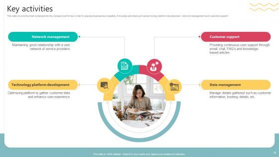This slide covers the most curtail activity the company performs in order to operate business successfully. It includes activities such as technology platform development, network management and customer support. From laying roadmaps to briefing everything in detail, our templates are perfect for you. You can set the stage with your presentation slides. All you have to do is download these easy-to-edit and customizable templates. Key Activities Travel Technology Company Business Model BMC SS V will help you deliver an outstanding performance that everyone would remember and praise you for. Do download this presentation today. This slide covers the most curtail activity the company performs in order to operate business successfully. It includes activities such as technology platform development, network management and customer support.