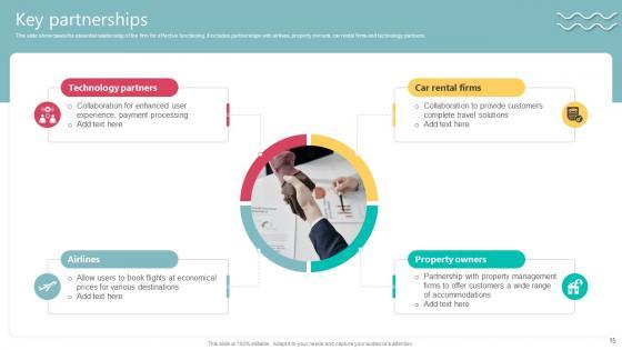This slide showcases the essential relationship of the firm for effective functioning. It includes partnerships with airlines, property owners, car rental firms and technology partners. Present like a pro with Key Partnerships Travel Technology Company Business Model BMC SS V. Create beautiful presentations together with your team, using our easy-to-use presentation slides. Share your ideas in real-time and make changes on the fly by downloading our templates. So whether you are in the office, on the go, or in a remote location, you can stay in sync with your team and present your ideas with confidence. With Slidegeeks presentation got a whole lot easier. Grab these presentations today. This slide showcases the essential relationship of the firm for effective functioning. It includes partnerships with airlines, property owners, car rental firms and technology partners.