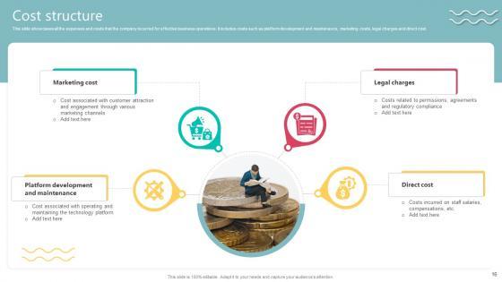 This slide showcases all the expenses and costs that the company incurred for effective business operations. It includes costs such as platform development and maintenance, marketing costs, legal charges and direct cost. Slidegeeks is one of the best resources for PowerPoint templates. You can download easily and regulate Cost Structure Travel Technology Company Business Model BMC SS V for your personal presentations from our wonderful collection. A few clicks is all it takes to discover and get the most relevant and appropriate templates. Use our Templates to add a unique zing and appeal to your presentation and meetings. All the slides are easy to edit and you can use them even for advertisement purposes. This slide showcases all the expenses and costs that the company incurred for effective business operations. It includes costs such as platform development and maintenance, marketing costs, legal charges and direct cost.