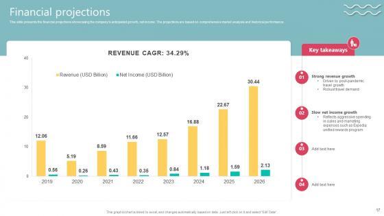 This slide presents the financial projections showcasing the companys anticipated growth, net income. The projections are based on comprehensive market analysis and historical performance. Do you have to make sure that everyone on your team knows about any specific topic I yes, then you should give Financial Projections Travel Technology Company Business Model BMC SS V a try. Our experts have put a lot of knowledge and effort into creating this impeccable Financial Projections Travel Technology Company Business Model BMC SS V. You can use this template for your upcoming presentations, as the slides are perfect to represent even the tiniest detail. You can download these templates from the Slidegeeks website and these are easy to edit. So grab these today This slide presents the financial projections showcasing the companys anticipated growth, net income. The projections are based on comprehensive market analysis and historical performance.