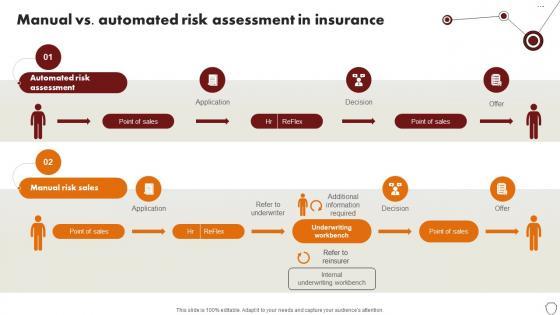 Present like a pro with Technology Trends In Online Insurance Manual Vs Automated Risk Assessment In Insurance. Create beautiful presentations together with your team, using our easy-to-use presentation slides. Share your ideas in real-time and make changes on the fly by downloading our templates. So whether you are in the office, on the go, or in a remote location, you can stay in sync with your team and present your ideas with confidence. With Slidegeeks presentation got a whole lot easier. Grab these presentations today. Our Technology Trends In Online Insurance Manual Vs Automated Risk Assessment In Insurance are topically designed to provide an attractive backdrop to any subject. Use them to look like a presentation pro.