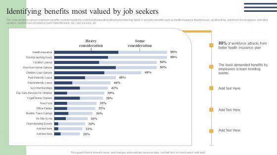 The slide identifies various employee benefits most demanded by skilled professionals to attract and retain top talent. It includes benefits such as health insurance, flexible hours, vacation time, work from home options, unlimited vacation, student loan assistance, paid maternity leave, day care services, etc. Crafting an eye-catching presentation has never been more straightforward. Let your presentation shine with this tasteful yet straightforward Action Measures To Build Staff Identifying Benefits Most Valued By Job Seekers Designs Pdf template. It offers a minimalistic and classy look that is great for making a statement. The colors have been employed intelligently to add a bit of playfulness while still remaining professional. Construct the ideal Action Measures To Build Staff Identifying Benefits Most Valued By Job Seekers Designs Pdf that effortlessly grabs the attention of your audience. Begin now and be certain to wow your customers. The slide identifies various employee benefits most demanded by skilled professionals to attract and retain top talent. It includes benefits such as health insurance, flexible hours, vacation time, work from home options, unlimited vacation, student loan assistance, paid maternity leave, day care services, etc.