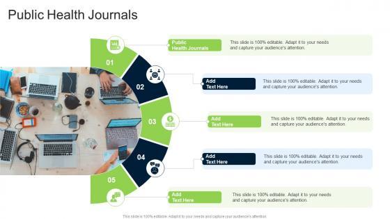 Introducing our well designed Public Health Journals In Powerpoint And Google Slides Cpb. This PowerPoint design presents information on topics like Public Health Journals. As it is predesigned it helps boost your confidence level. It also makes you a better presenter because of its high quality content and graphics. This PPT layout can be downloaded and used in different formats like PDF, PNG, and JPG. Not only this, it is available in both Standard Screen and Widescreen aspect ratios for your convenience. Therefore, click on the download button now to persuade and impress your audience. Our Public Health Journals In Powerpoint And Google Slides Cpb are topically designed to provide an attractive backdrop to any subject. Use them to look like a presentation pro.