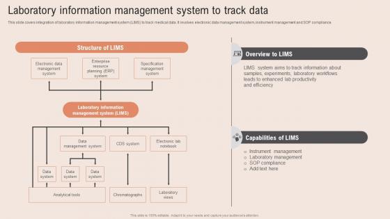 This slide covers integration of laboratory information management system LIMS to track medical data. It involves electronic data management system, instrument management and SOP compliance. Get a simple yet stunning designed Incorporating HIS To Enhance Healthcare Services Laboratory Information Management System To Track Data Slides PDF. It is the best one to establish the tone in your meetings. It is an excellent way to make your presentations highly effective. So, download this PPT today from Slidegeeks and see the positive impacts. Our easy to edit Incorporating HIS To Enhance Healthcare Services Laboratory Information Management System To Track Data Slides PDF can be your go to option for all upcoming conferences and meetings. So, what are you waiting for Grab this template today.