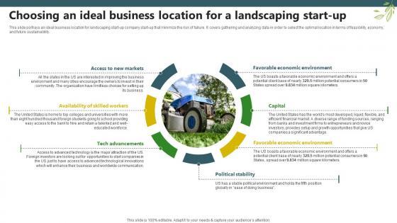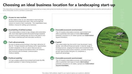Create an editable Choosing An Ideal Business Location For A Landscaping Start Up Lawn Care BP SS V that communicates your idea and engages your audience. Whether you are presenting a business or an educational presentation, pre-designed presentation templates help save time. Choosing An Ideal Business Location For A Landscaping Start Up Lawn Care BP SS V is highly customizable and very easy to edit, covering many different styles from creative to business presentations. Slidegeeks has creative team members who have crafted amazing templates. So, go and get them without any delay. Our Choosing An Ideal Business Location For A Landscaping Start Up Lawn Care BP SS V are topically designed to provide an attractive backdrop to any subject. Use them to look like a presentation pro.