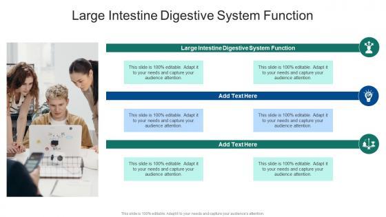 Presenting our innovatively designed set of slides titled Large Intestine Digestive System Function In Powerpoint And Google Slides Cpb. This completely editable PowerPoint graphic exhibits Large Intestine Digestive System Function that will help you convey the message impactfully. It can be accessed with Google Slides and is available in both standard screen and widescreen aspect ratios. Apart from this, you can download this well structured PowerPoint template design in different formats like PDF, JPG, and PNG. So, click the download button now to gain full access to this PPT design. Our Large Intestine Digestive System Function In Powerpoint And Google Slides Cpb are topically designed to provide an attractive backdrop to any subject. Use them to look like a presentation pro.