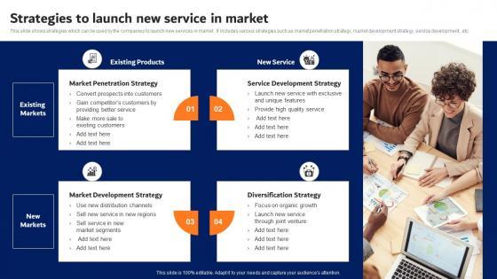 This slide shows strategies which can be used by the companies to launch new services in market . It includes various strategies such as market penetration strategy, market development strategy, service development , etc. Slidegeeks has constructed Digital Advertising Strategies To Launch New Service In Market Graphics Pdf after conducting extensive research and examination. These presentation templates are constantly being generated and modified based on user preferences and critiques from editors. Here, you will find the most attractive templates for a range of purposes while taking into account ratings and remarks from users regarding the content. This is an excellent jumping off point to explore our content and will give new users an insight into our top notch PowerPoint Templates. This slide shows strategies which can be used by the companies to launch new services in market . It includes various strategies such as market penetration strategy, market development strategy, service development , etc.
