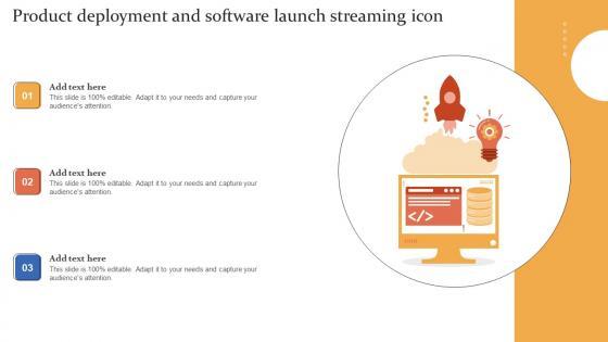 Showcasing this set of slides titled Product Deployment And Software Launch Streaming Icon Elements Pdf The topics addressed in these templates are Product Deployment, Software Launch, Streaming Icon All the content presented in this PPT design is completely editable. Download it and make adjustments in color, background, font etc. as per your unique business setting. Our Product Deployment And Software Launch Streaming Icon Elements Pdf are topically designed to provide an attractive backdrop to any subject. Use them to look like a presentation pro.