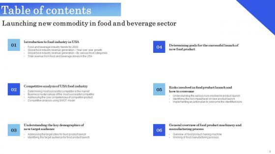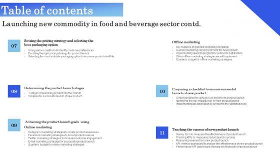 This Launching New Commodity In Food And Beverage Sector Table Of Contents Pictures Pdf is perfect for any presentation, be it in front of clients or colleagues. It is a versatile and stylish solution for organizing your meetings. The Launching New Commodity In Food And Beverage Sector Table Of Contents Pictures Pdf features a modern design for your presentation meetings. The adjustable and customizable slides provide unlimited possibilities for acing up your presentation. Slidegeeks has done all the homework before launching the product for you. So, do not wait, grab the presentation templates today Our Launching New Commodity In Food And Beverage Sector Table Of Contents Pictures Pdf are topically designed to provide an attractive backdrop to any subject. Use them to look like a presentation pro.