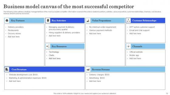 The following slide outlines a strategic management tool of the most successful competitor. Information covered in this slide is related to partners, activities, value propositions, customer relationships, channels, cost structure, revenue streams and key resources.Are you in need of a template that can accommodate all of your creative concepts This one is crafted professionally and can be altered to fit any style. Use it with Google Slides or PowerPoint. Include striking photographs, symbols, depictions, and other visuals. Fill, move around, or remove text boxes as desired. Test out color palettes and font mixtures. Edit and save your work, or work with colleagues. Download Business Model Canvas Of The Most Successful Competitor Launching New Beverage Product Professional PDF and observe how to make your presentation outstanding. Give an impeccable presentation to your group and make your presentation unforgettable.