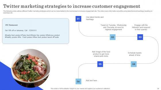 The following slide outlines different Twitter marketing strategies which can be implemented by the businesses to increase engagement rate. The slide covers information about the using latest trends hashtags, tweeting on weekdays etc. This Twitter Marketing Strategies To Increase Customer Engagement Launching New Beverage Product Background PDF is perfect for any presentation, be it in front of clients or colleagues. It is a versatile and stylish solution for organizing your meetings. The Twitter Marketing Strategies To Increase Customer Engagement Launching New Beverage Product Background PDF features a modern design for your presentation meetings. The adjustable and customizable slides provide unlimited possibilities for acing up your presentation. Slidegeeks has done all the homework before launching the product for you. So, do not wait, grab the presentation templates today