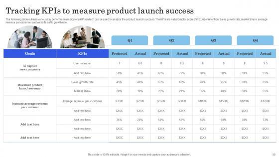 The following slide outlines various key performance indicators KPIs which can be used to analyze the product launch success. The KPIs are net promotor score NPS, user retention, sales growth rate, market share, average revenue per customer and website traffic growth rate.This modern and well-arranged Tracking Kpis To Measure Product Launch Success Launching New Beverage Product Download PDF provides lots of creative possibilities. It is very simple to customize and edit with the Powerpoint Software. Just drag and drop your pictures into the shapes. All facets of this template can be edited with Powerpoint no extra software is necessary. Add your own material, put your images in the places assigned for them, adjust the colors, and then you can show your slides to the world, with an animated slide included.